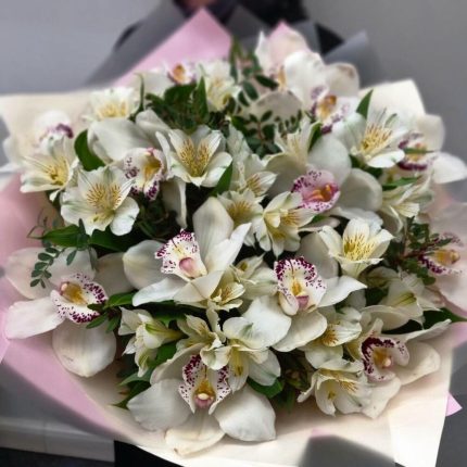 ЮЛИЯ огромный премиальный авторский букет из лилий, фрезий и альстромерии