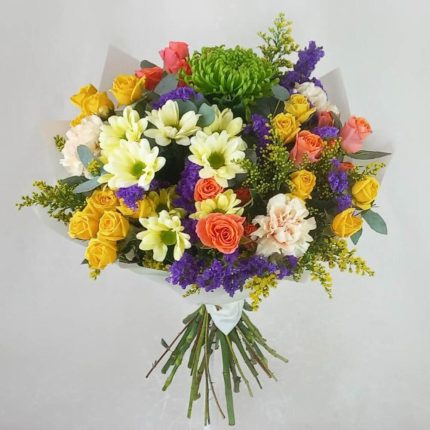 Большой букет с французскими розами, пион кустовой розой и гортензией