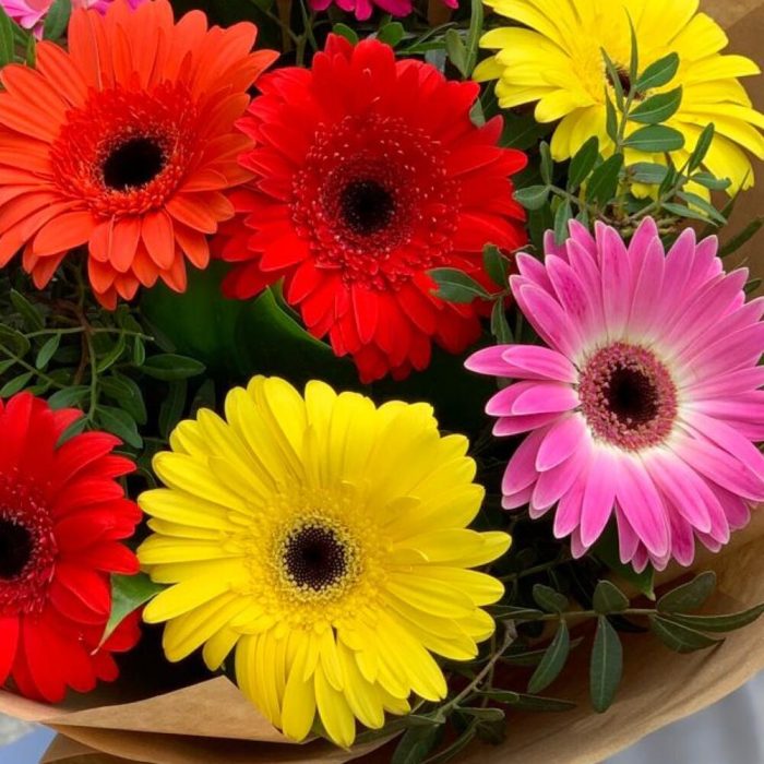 Гербера – 9 шт.Фисташка – 3 шт.Крафт – 1 шт.