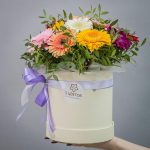 “Сиреневый туман” – композиция из гипсофилы в шляпной коробке