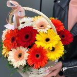 герберы – 17 шт. Писташ – 6 шт. Корзина – 1 шт. Оазис – 2 шт. Оформление – 1 шт.
