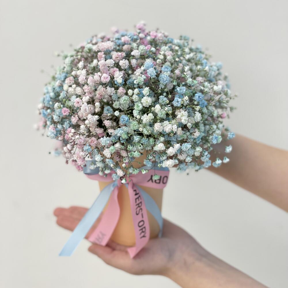 «Лавандовое созвездие» Букет из розы, гвоздики, статица и хлопка