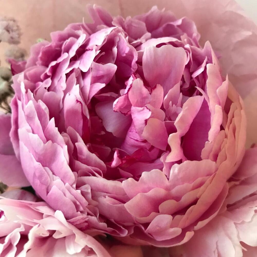 Нежный букет с крупными розовыми пионами и гипсофиллой