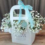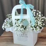 “Сиреневый туман” – композиция из гипсофилы в шляпной коробке