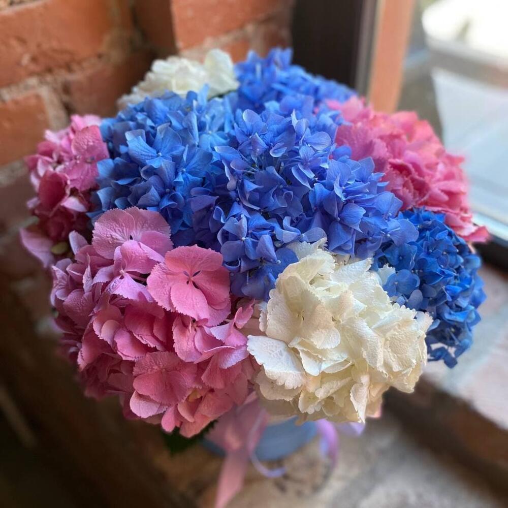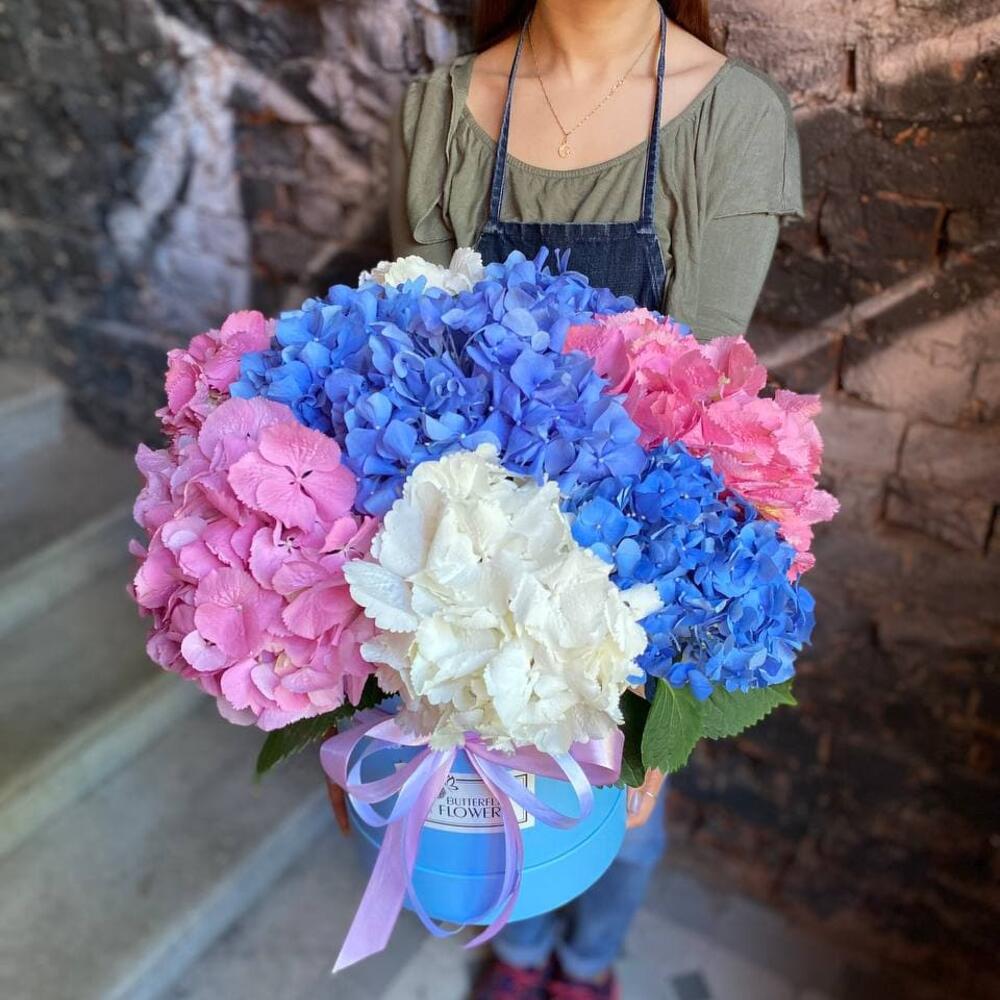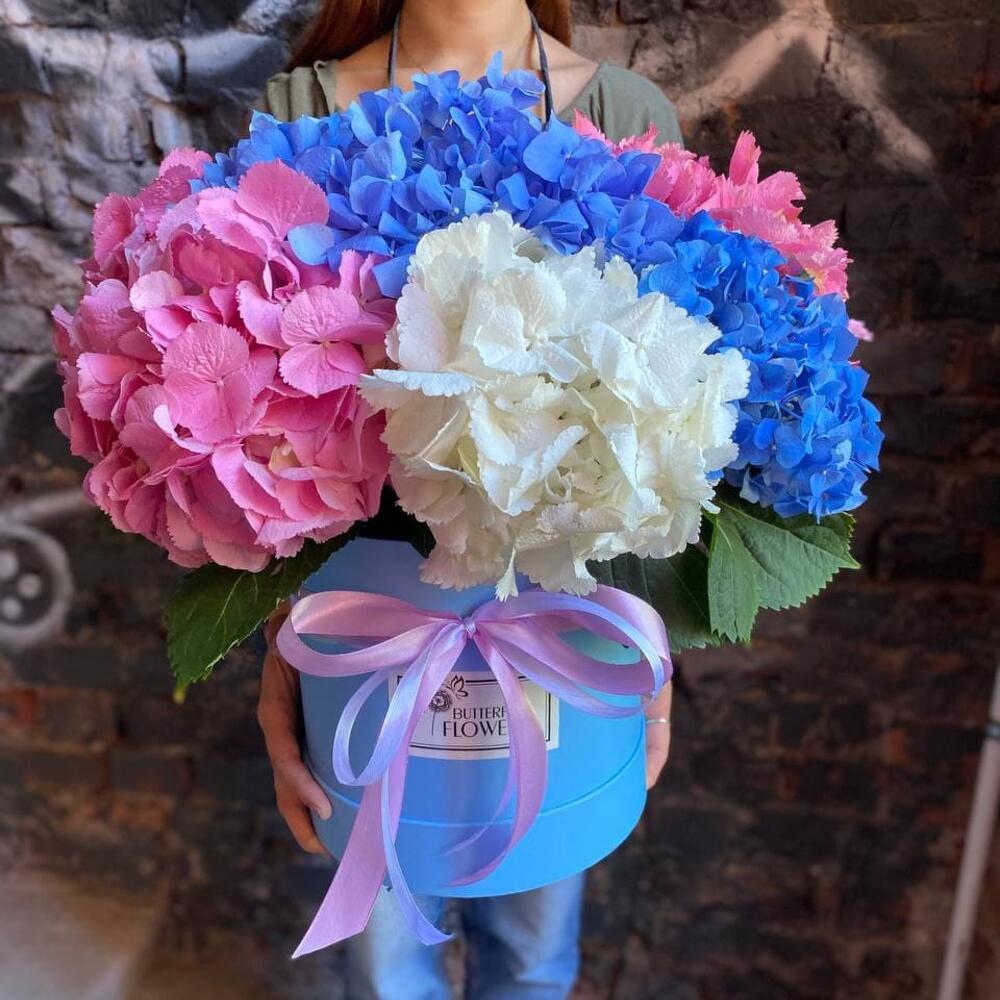 Гортензия – 9 шт.Оазис – 3 шт.Шляпная коробка – 1 шт.