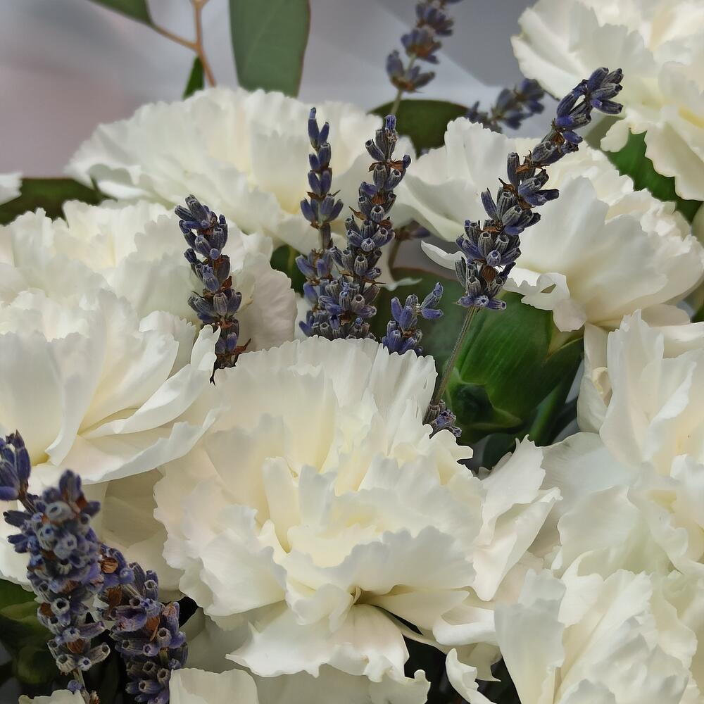Гвоздика – 15 шт.Фисташка – 4 шт.Эвкалипт Микс – 1 шт.Лаванда (сухоцвет) – 20 шт.Упаковка дизайнерская – 1 шт.