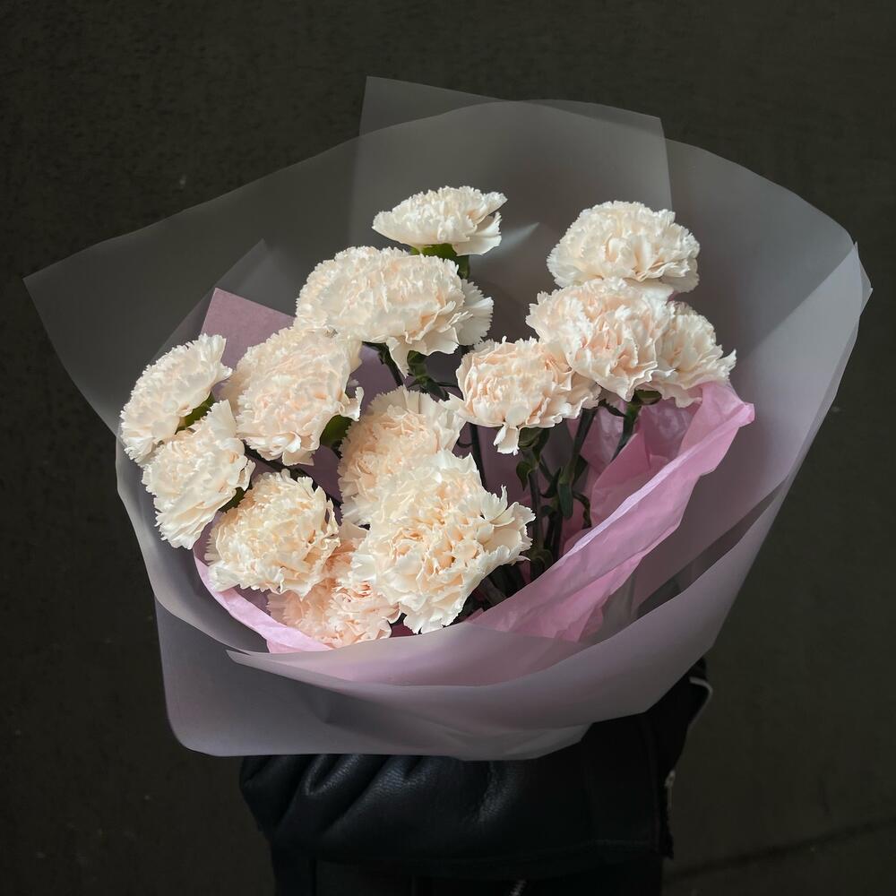 Букет 28 из кустовых пионовидных роз и сортового диантуса