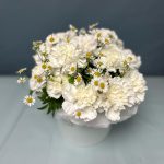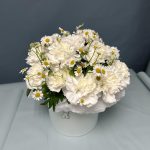 Цветочная композиция в коробке с ромашками и гвоздиками