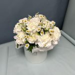 Гвоздика – 15 шт.Тишью – 1 шт.Матрикария – 2 шт.Коробка – 1 шт.Оазис флористический – 1 шт.