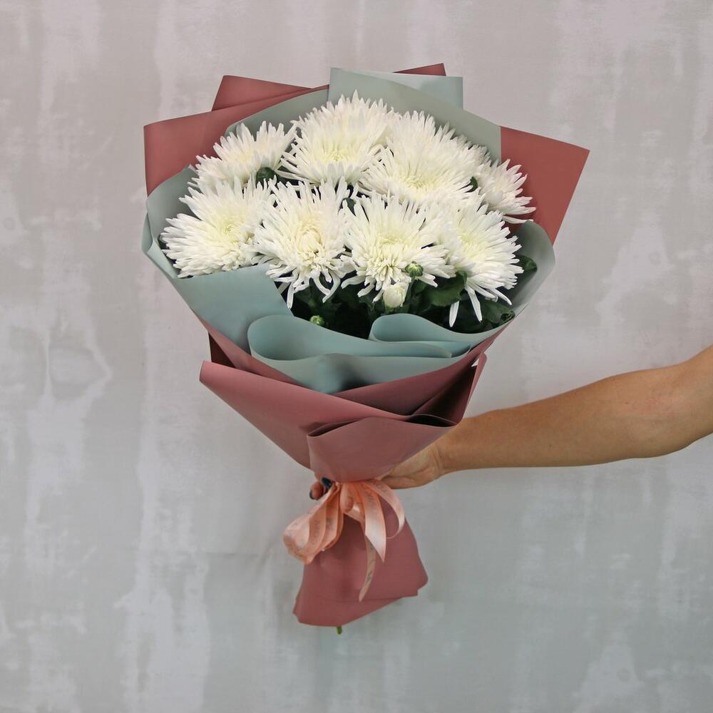 Букет из 11 белых хризантем Анастасия в стильной упаковке
