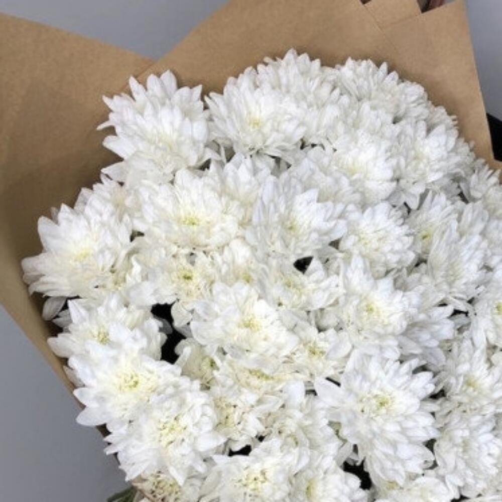 Хризантема кустовая – 15 шт.Упаковка дизайнерская – 2 шт.Лента атласная – 2 шт.