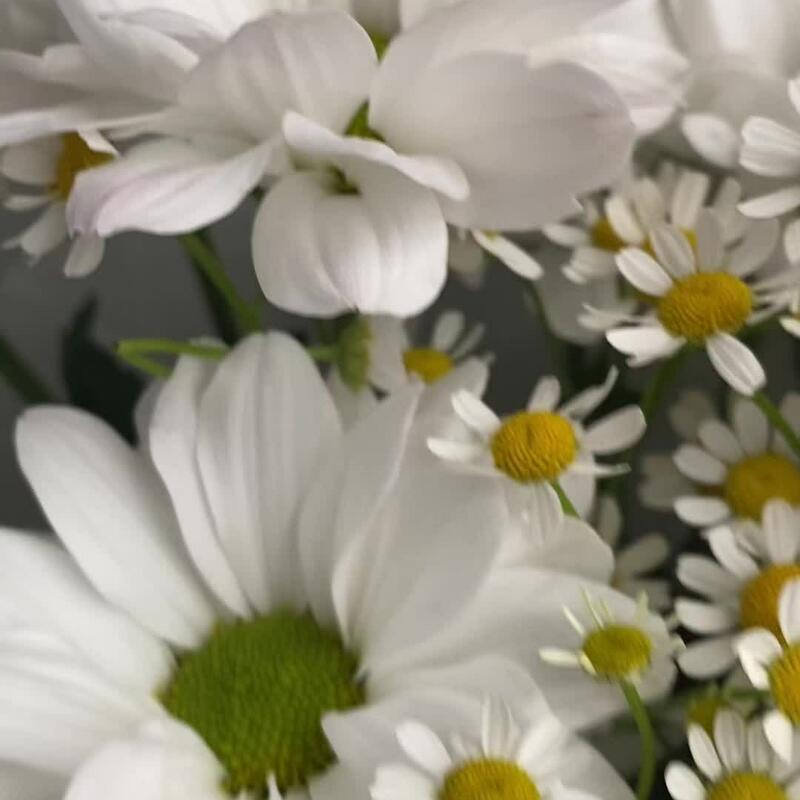 Танацетум – 4 шт.Лента атласная – 2 шт.Хризантема кустовая ромашка – 3 шт.Упаковка дизайнерская – 1 шт.