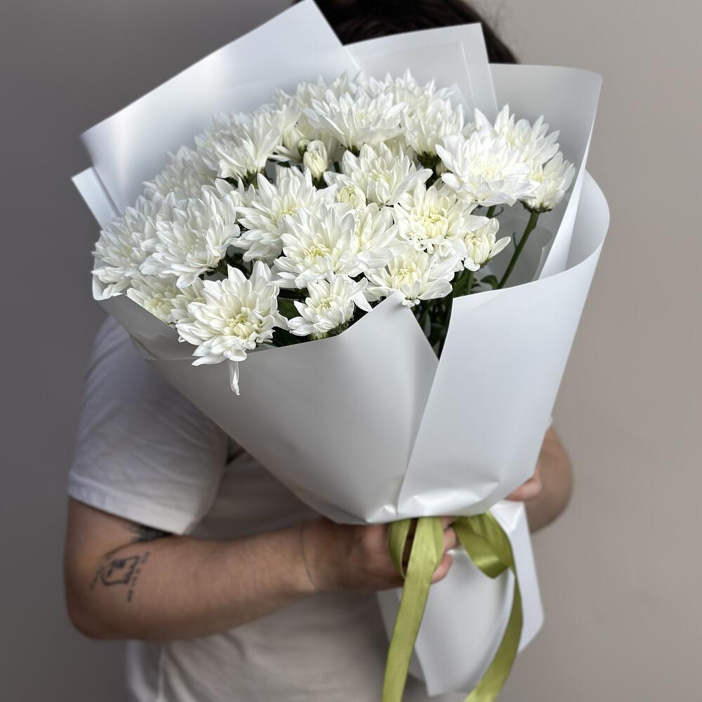 Букет из белоснежной гипсофилы с кустовой гвоздикой