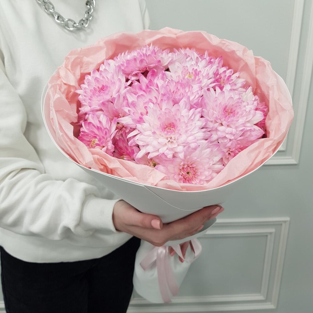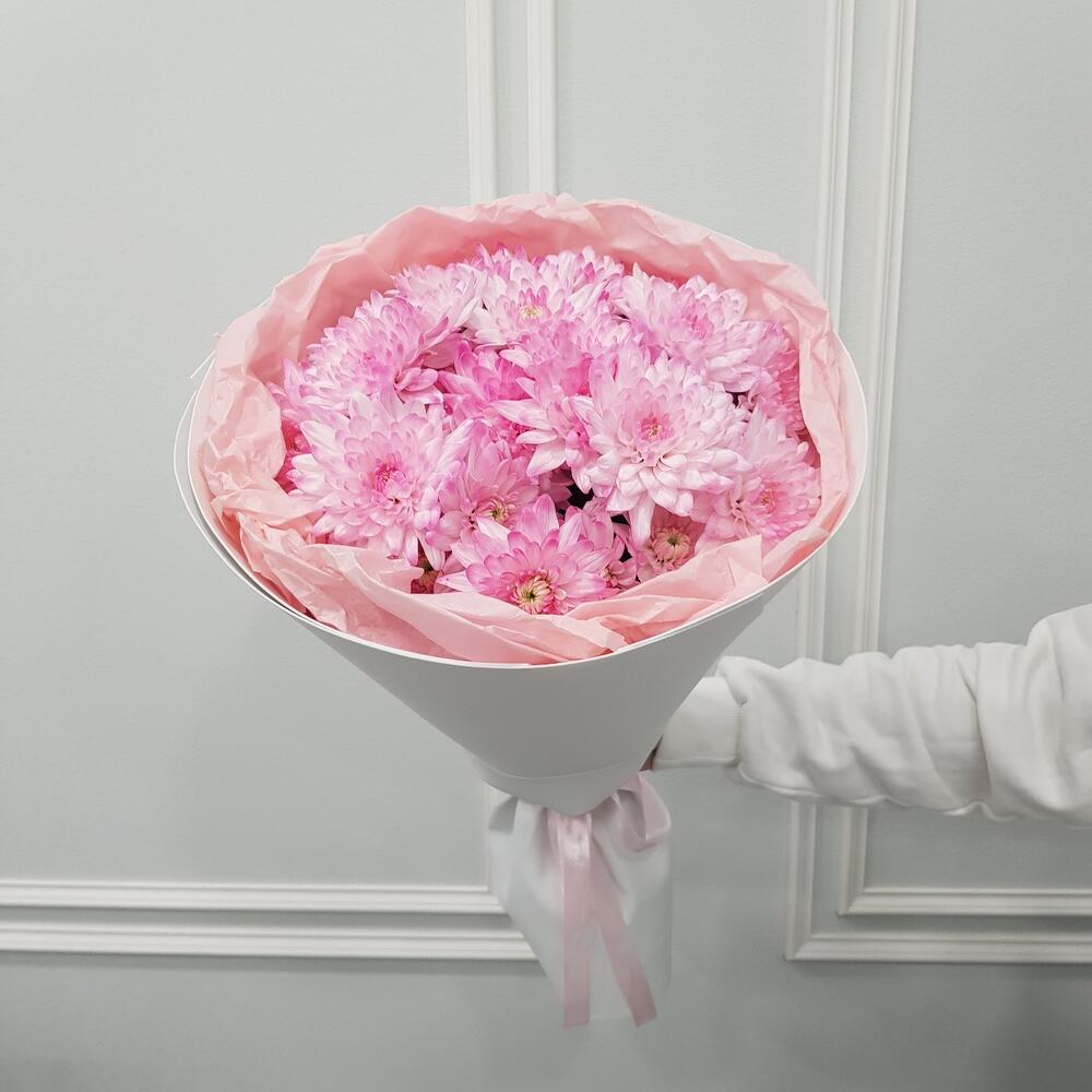 Букет с кустовой хризантемой будет радовать цветом и стойкостью