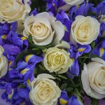 Букет 9 белых роз и 17 ирисов