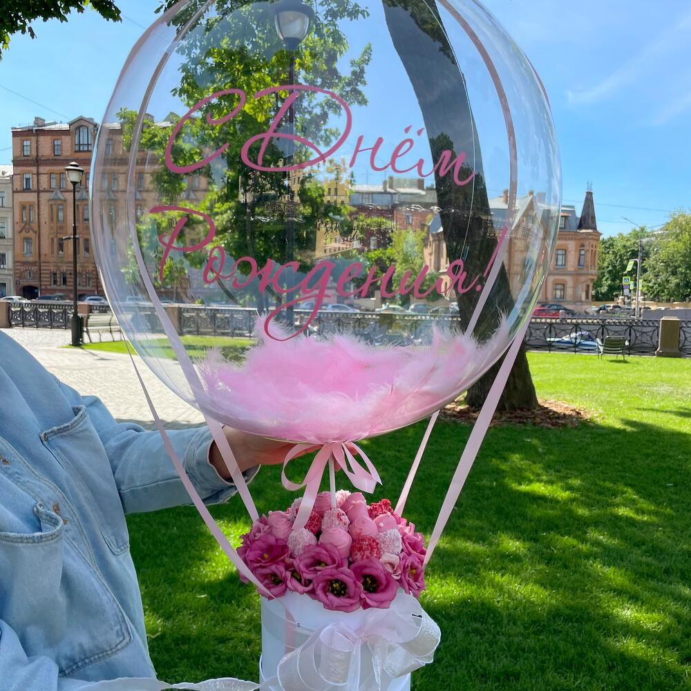 эустома розовая – 5 шт.клубника в бельгийском шоколаде – 350 гр.воздушный шар с индивидуальной надписью – 1 шт.