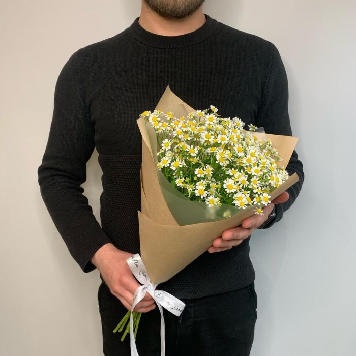 Танацетум – 7 шт.Лента атласная – 1 шт.Крафт – 1 шт.