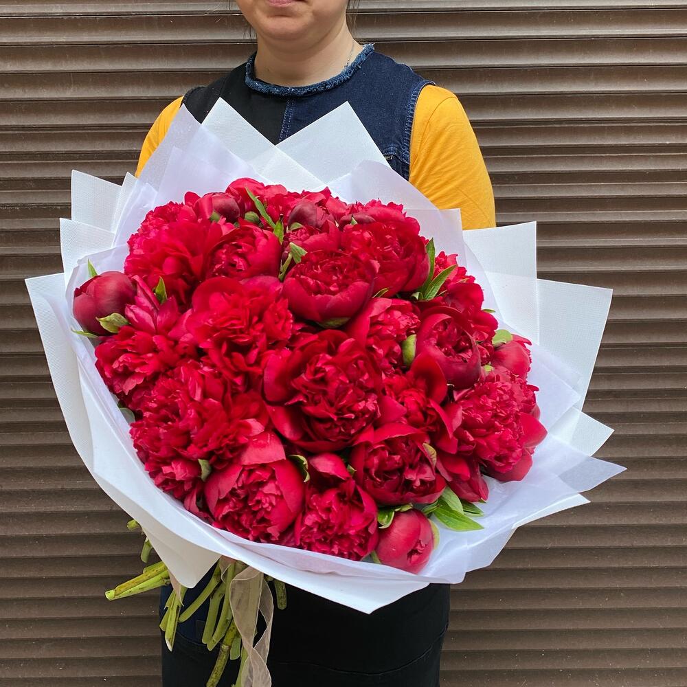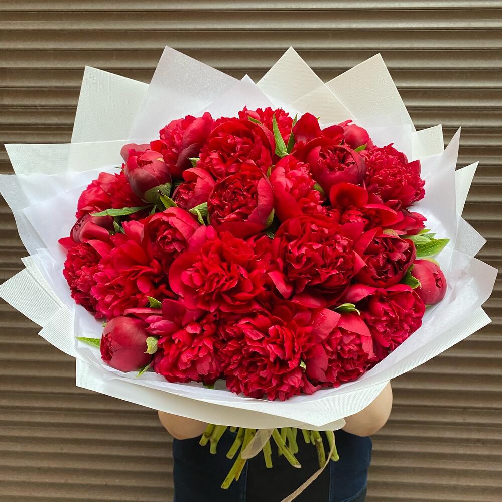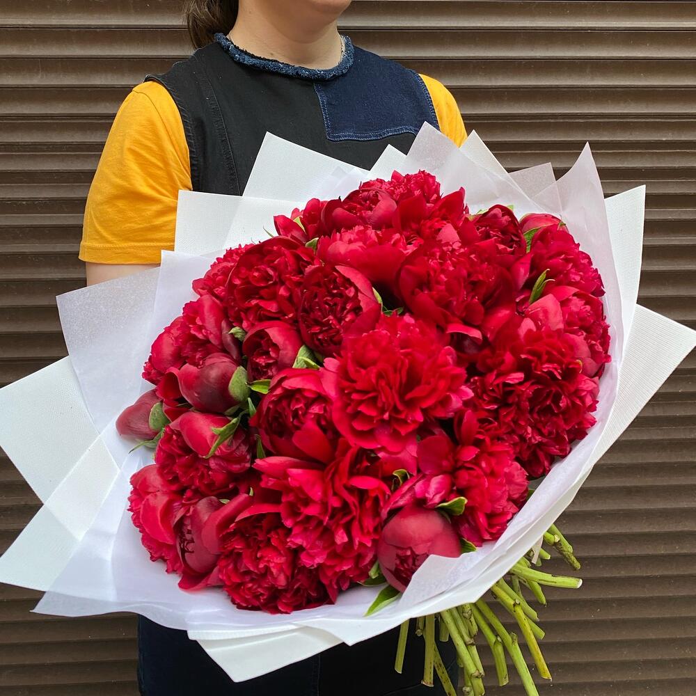 Букет из красных пион 35 штук (моно 078)
