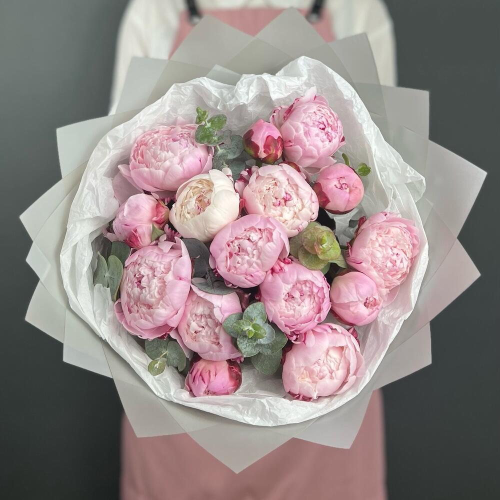 Букет из розовых Пионов Сара Бернар (15 шт)