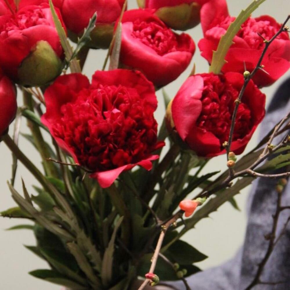 Яркий букет с пионами и ветвями.Букет приедет в подарочной коробке, с рекомендациями по уходу за цветами.При необходимости, если букет с нежными цветами или ему предстоит весомое время в дороге – то цветы мы отравляем на воде, останется лишь аккуратно снять кулёчек с водой и поставить букет в подходящую вазу.К каждому букету мы подписываем открытку с вашим посланием – эта услуга, так же в подарок.