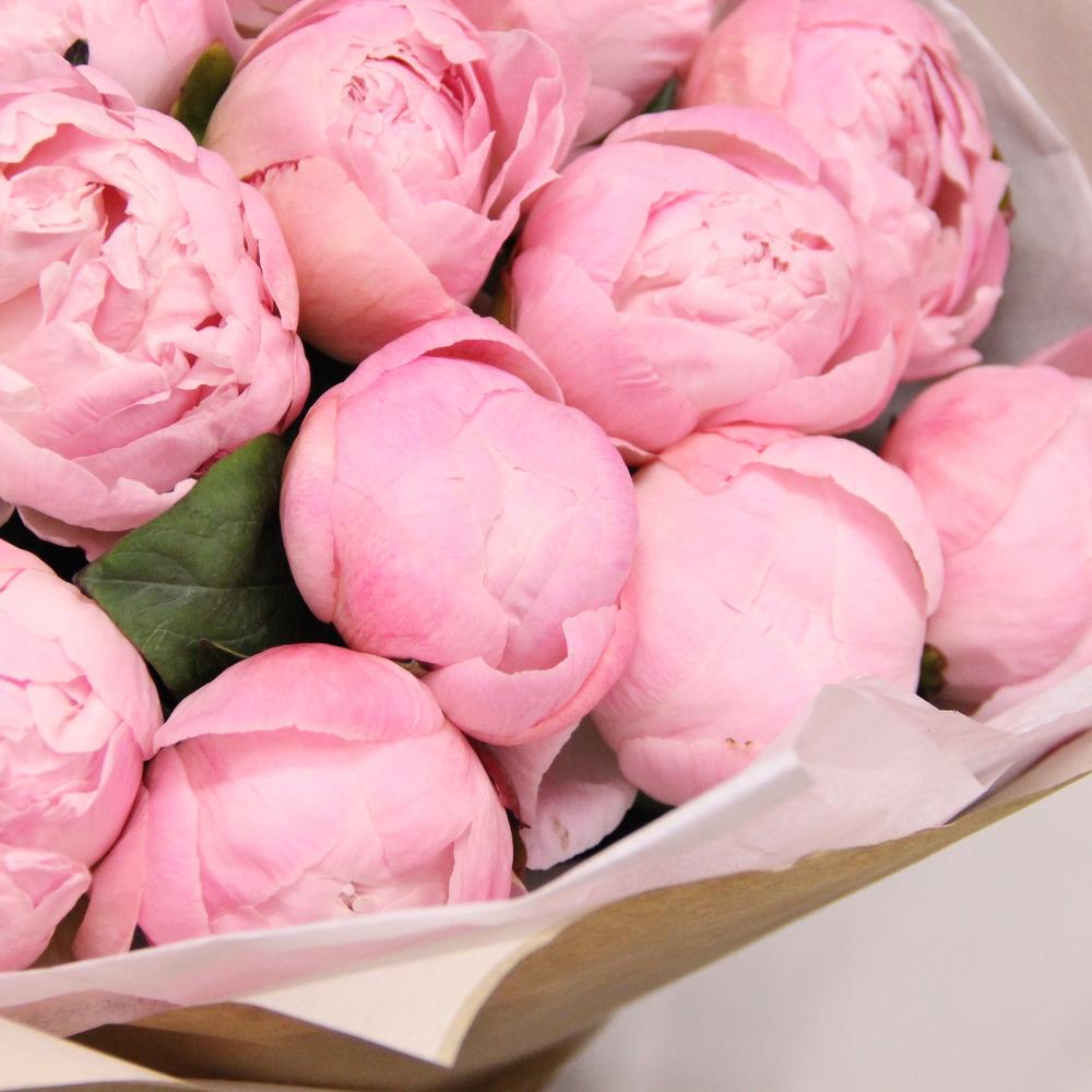 Букет из 15 нежных розовых пионов, в лаконичной упаковке.