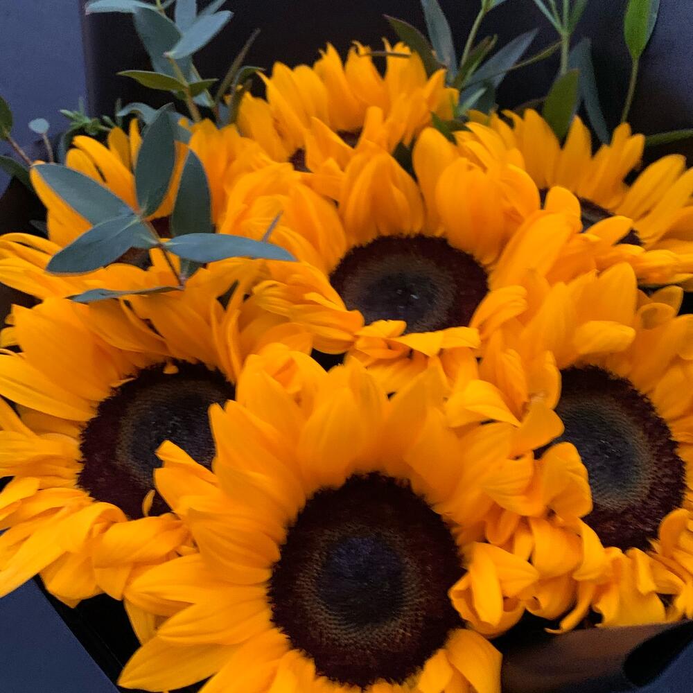 Букет из 7 подсолнухов в стильной упаковке "Сфера"