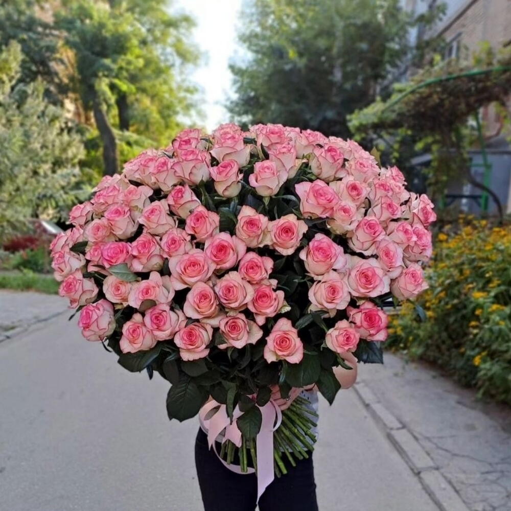 Метки: 101 роза, 14 февраля, На свадьбу, от 5000 руб, Роза 60 см, Розовые розы
