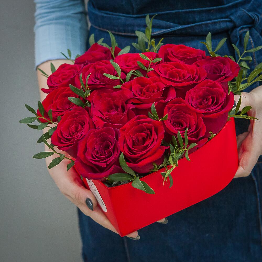 15 красных роз а коробке «сердце»