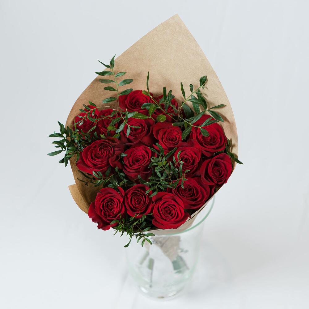 15 роз explorer премиум 50 см в крафте с зеленью