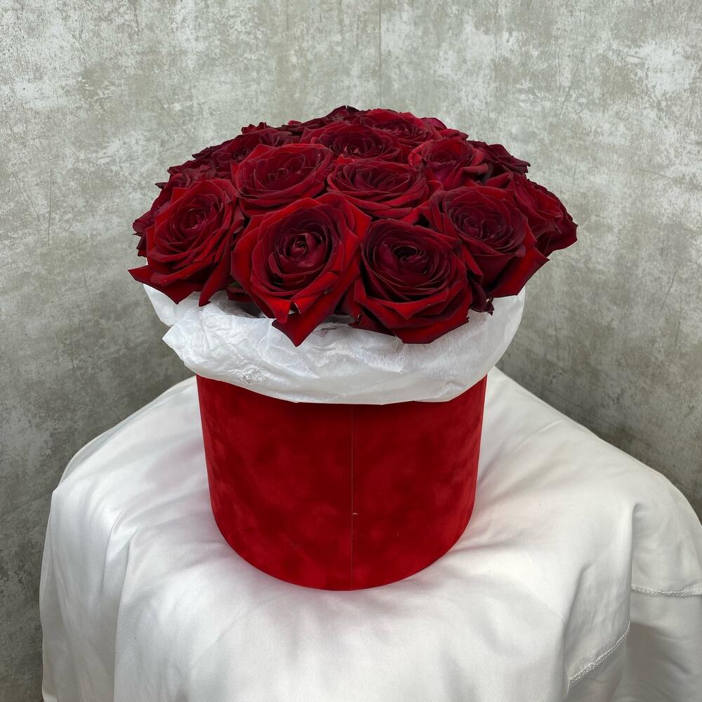 Роза – 27 шт.Бархатная коробка – 1 шт.Оазис – 1 шт.