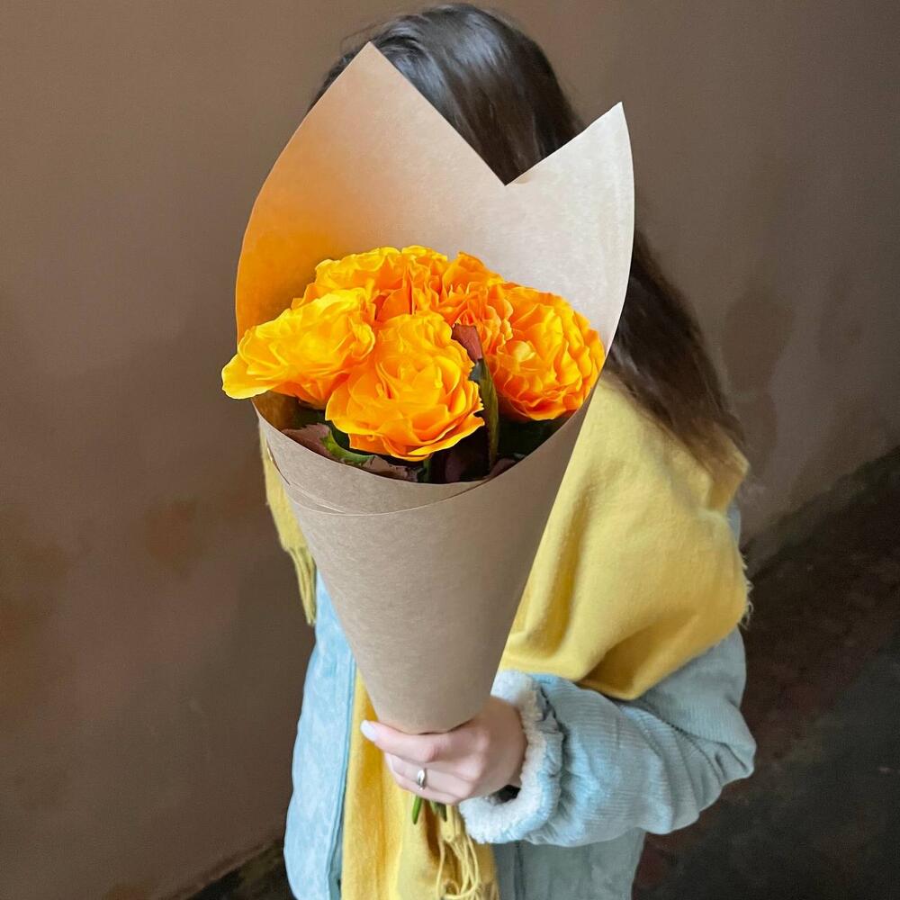 Крафтовая упаковка – 1 шт.роза оранжевая россия – 5 шт.