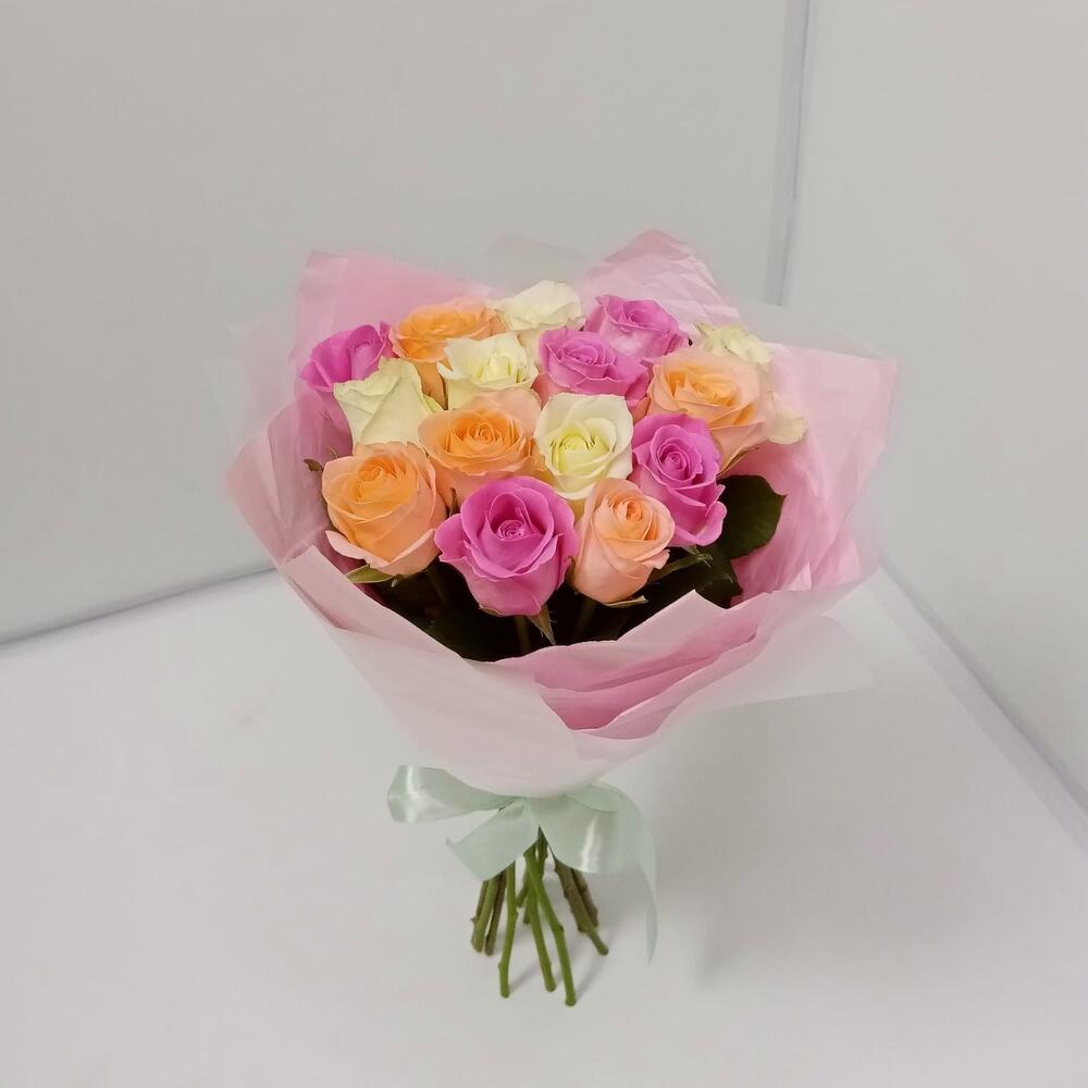 Букет из 15 роз микс 35-40 см (Кения) в упаковке