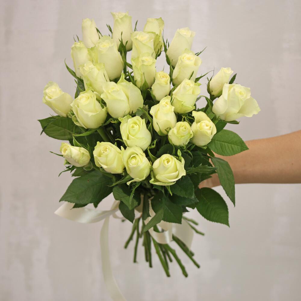 Букет из 25 белых роз 35-40 см (Кения) под ленту