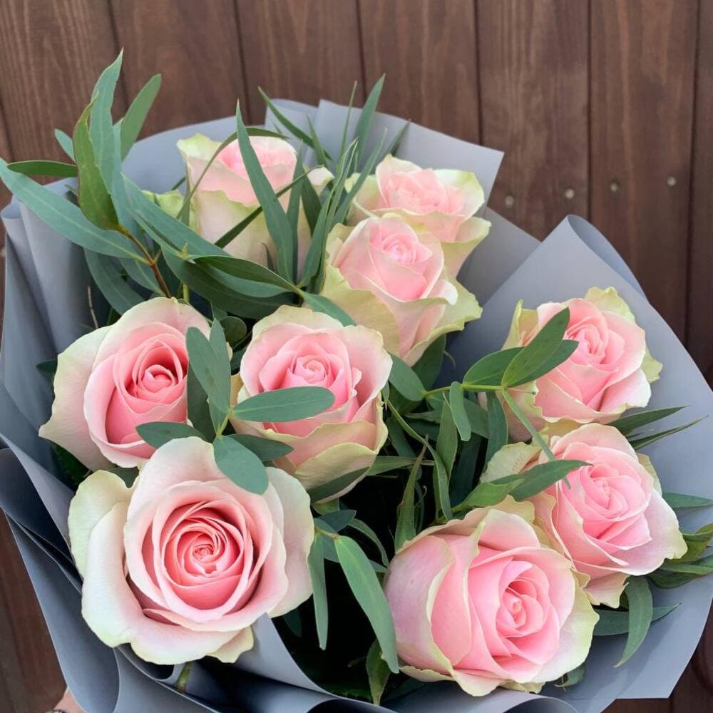 Роза – 9 шт.Упаковка – 2 шт.Эвкалипт – 3 шт.