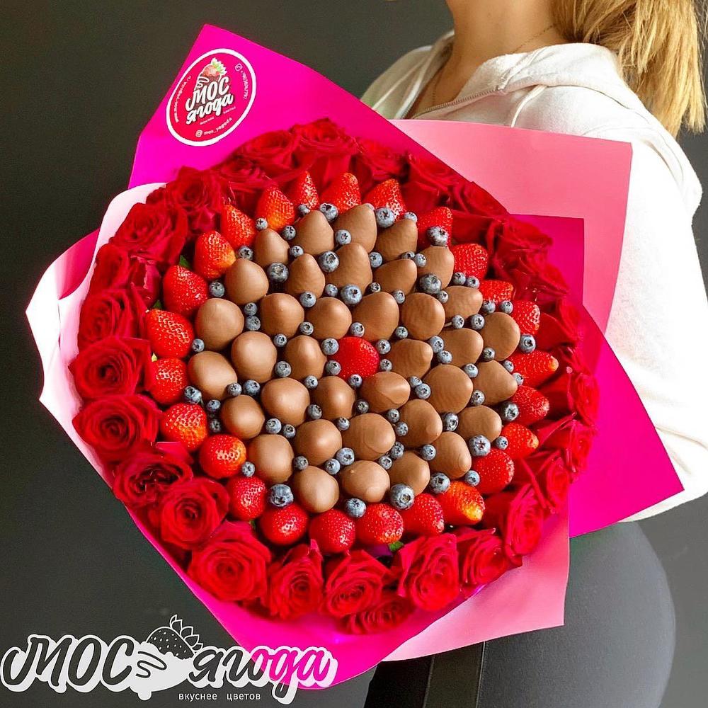 Клубника – 22 шт.Клубника в шоколаде callebaut (бельгия) – 40 шт.Роза – 19 шт.