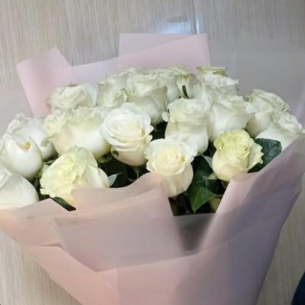 Метки: 25 роз, Белые розы, от 4000 до 5000 руб, Роза 70 см