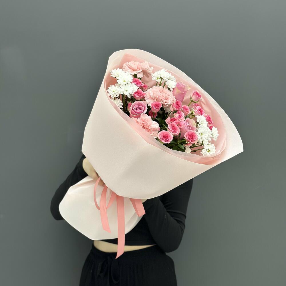 Букет из кустовой розы Бомбастик и Ромашки Матрикарии