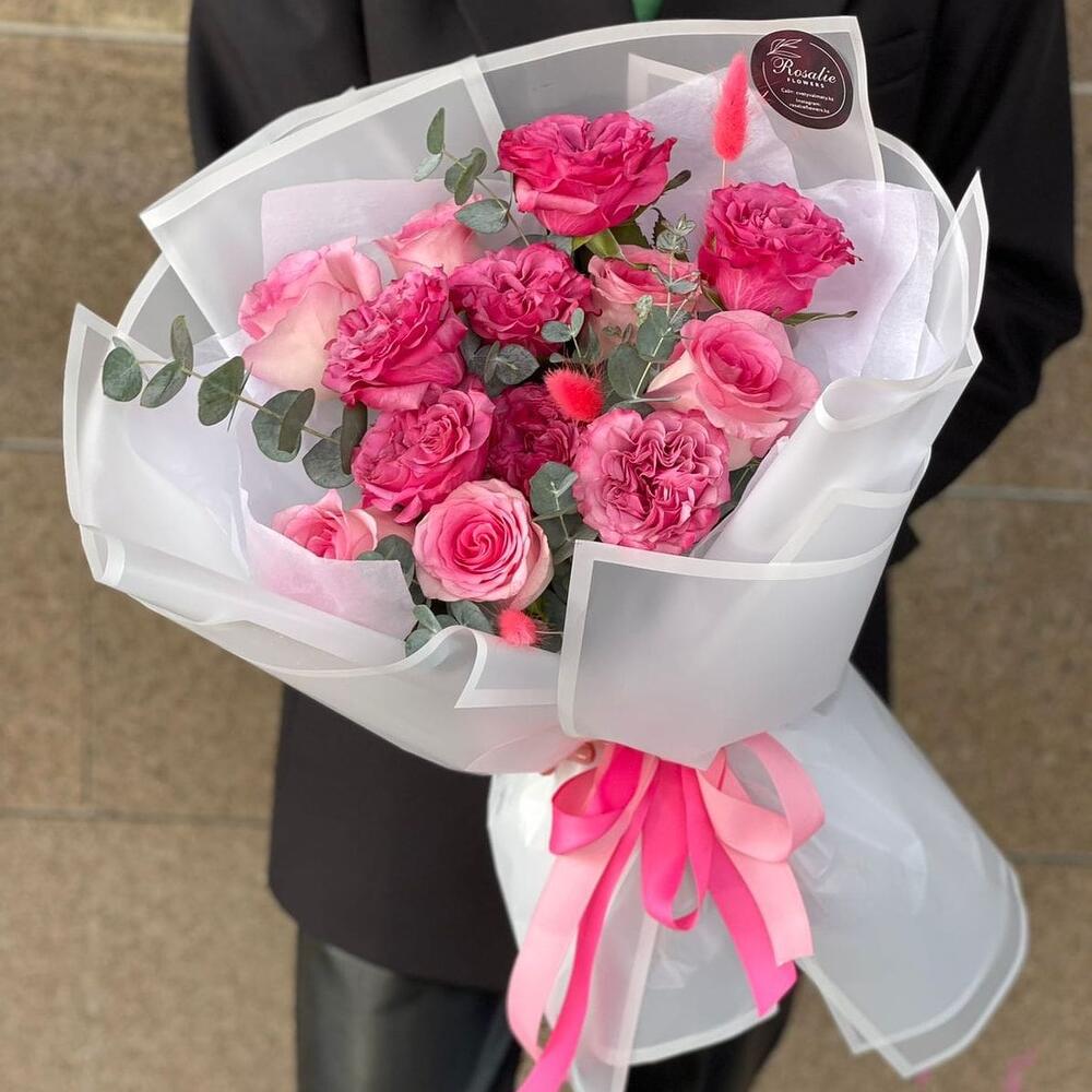 Букет из пионовидных роз Бомбастик и Мисти Баблс