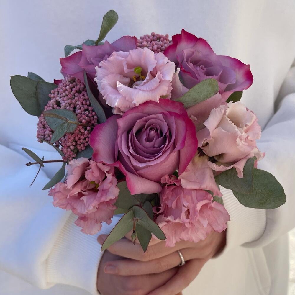 Лента – 2 шт.Лизиантус – 2 шт.Озотамнус – 2 шт.Роза одноголовая – 5 шт.