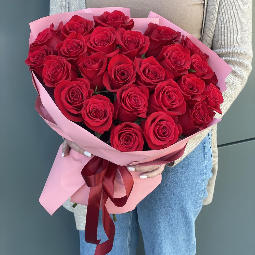 роза красная фридом – 25 шт. Оформление – 1 шт.