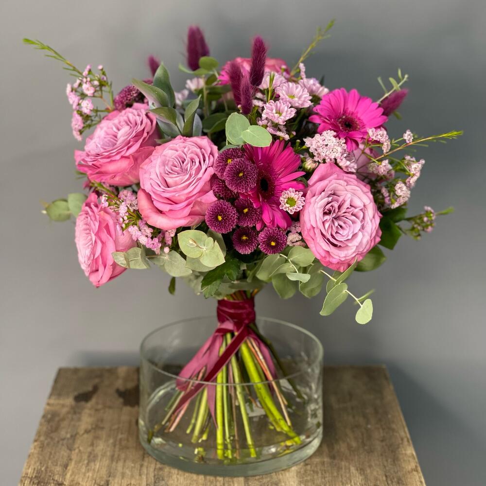 Букет с розами и герберами “Малиновый “