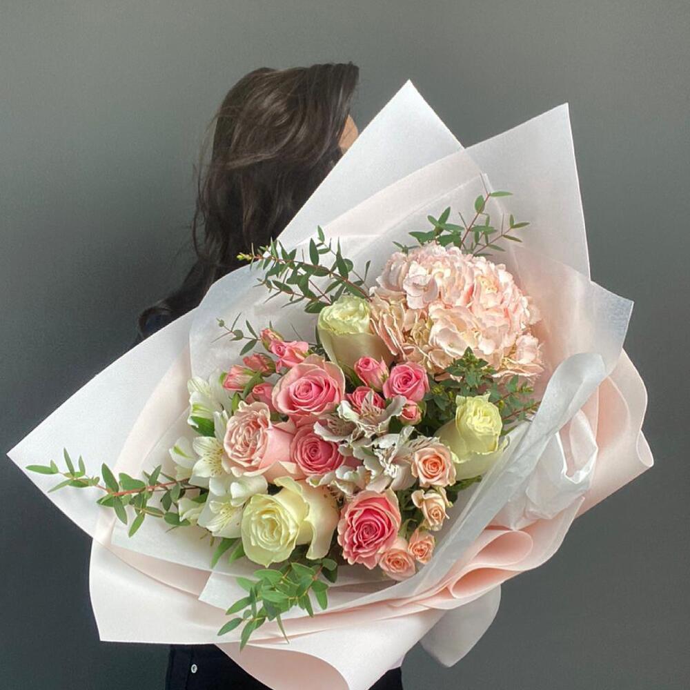 Гвоздики, Кустовые розы, Лизиантусы, Пионовидные розы, Розы