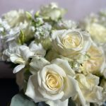 Одноголовая роза – 15 шт.Пионовидная роза – 5 шт.Фрезия – 16 шт.Маттиола – 17 шт.Гвоздика – 11 шт.Шляпная коробка – 1 шт.Флористическая губка (оазис) – 1 шт.Атласная лента – 1 шт.