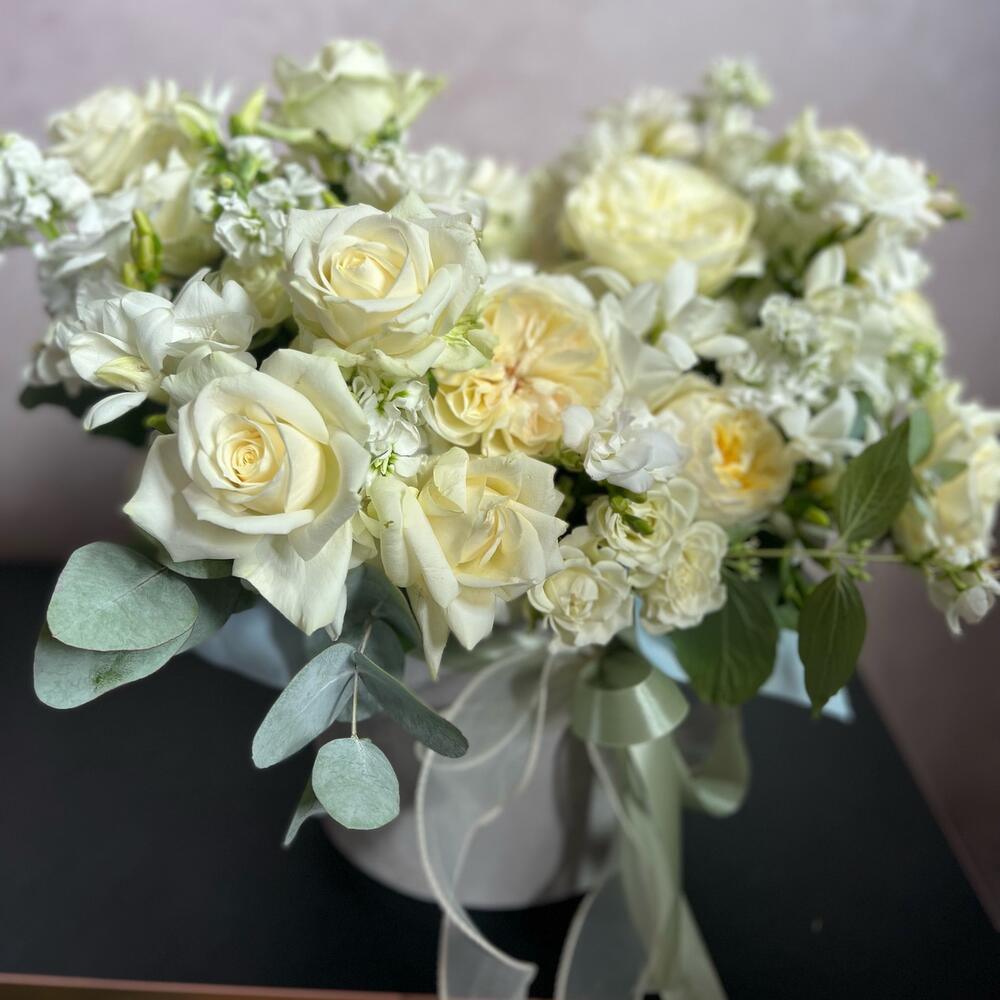 Композиция, вдохновляющая своей нежностью и воздушностью одновременно. Стильная коробочка, насыщенного светлого серого оттенка, стала оформлением для прекрасных цветов. Преподносите эти прекрасные цветы своим любимым, и вы увидите бескрайнюю нежность в их глазах.Доставим быстро и бережно.* К сожалению, мы не можем гарантировать 100% копию букета. Еженедельно к нам в салон приезжают свежие цветы и они могут отличаться друг от друга. Мы гарантируем вам соблюсти состав и общий стиль вашего букета. Букет из живых цветов мы начинаем собирать после оформления заказа.