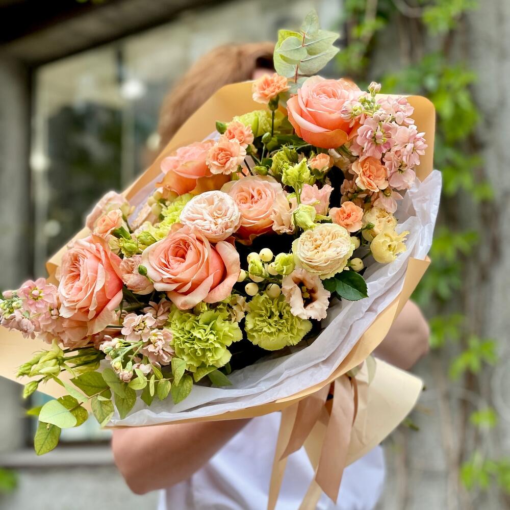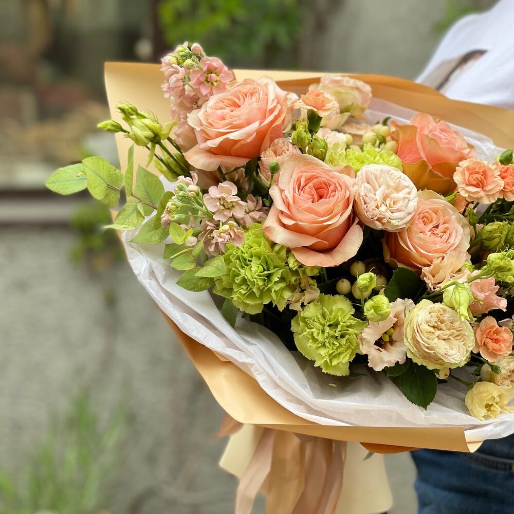 Сборный букет с пионовидными розами