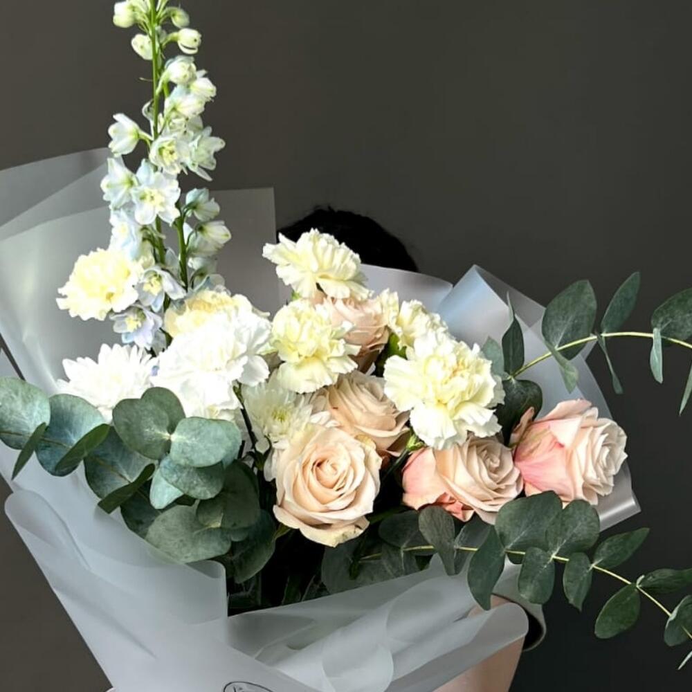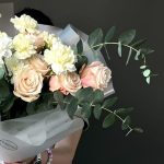 Альстромерии, Гвоздики, Кустовые розы, Лизиантусы, Розы, Хризантемы
