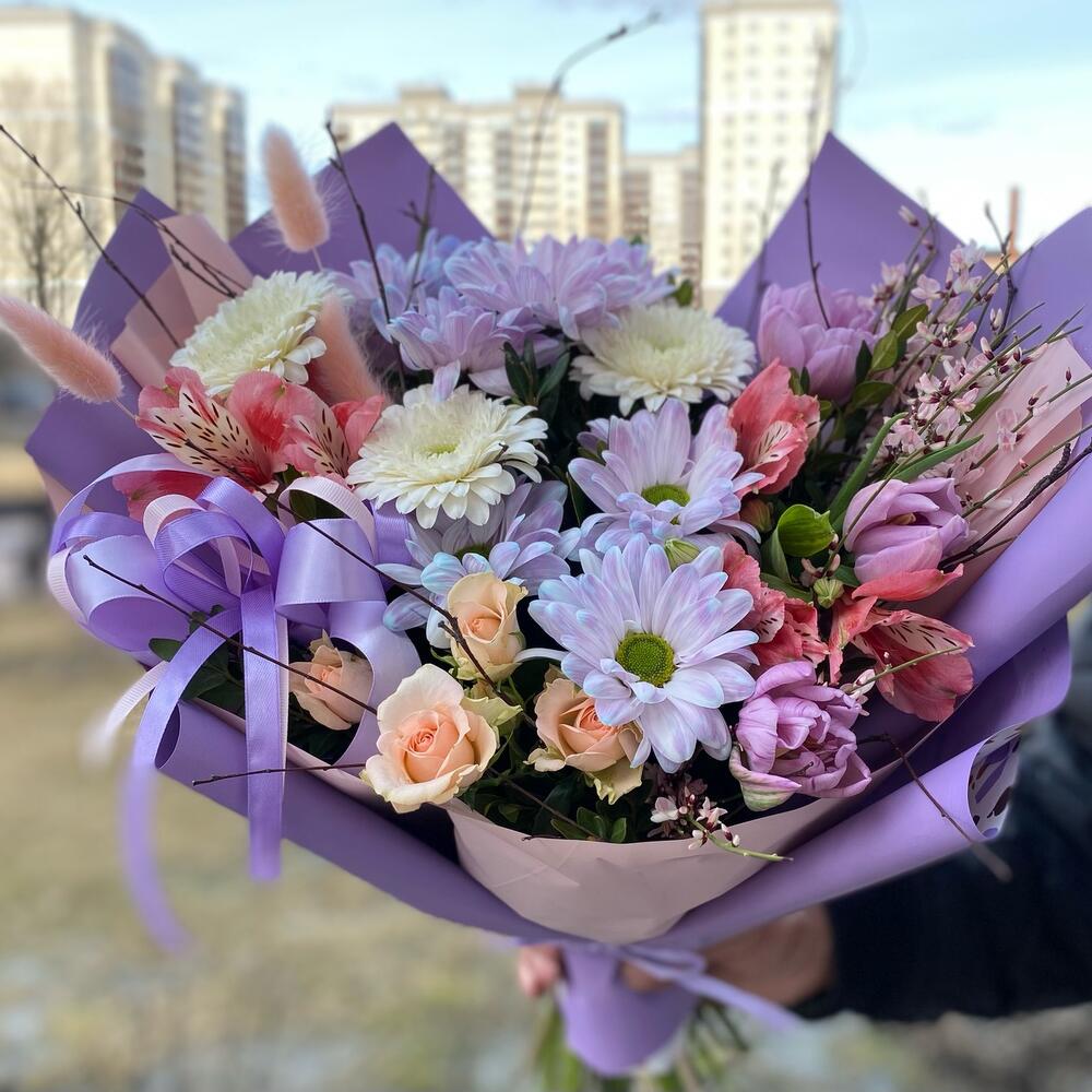 Категорий: Альстромерии, Герберы, Кустовые розы, Розы, Тюльпаны, Хризантемы