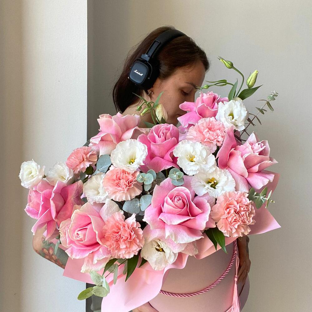 Гвоздики, Кустовые розы, Лизиантусы, Пионовидные розы, Розы