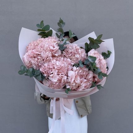 Альстромерии, Гортензии, Кустовые розы, Лизиантусы, Розы, Хризантемы