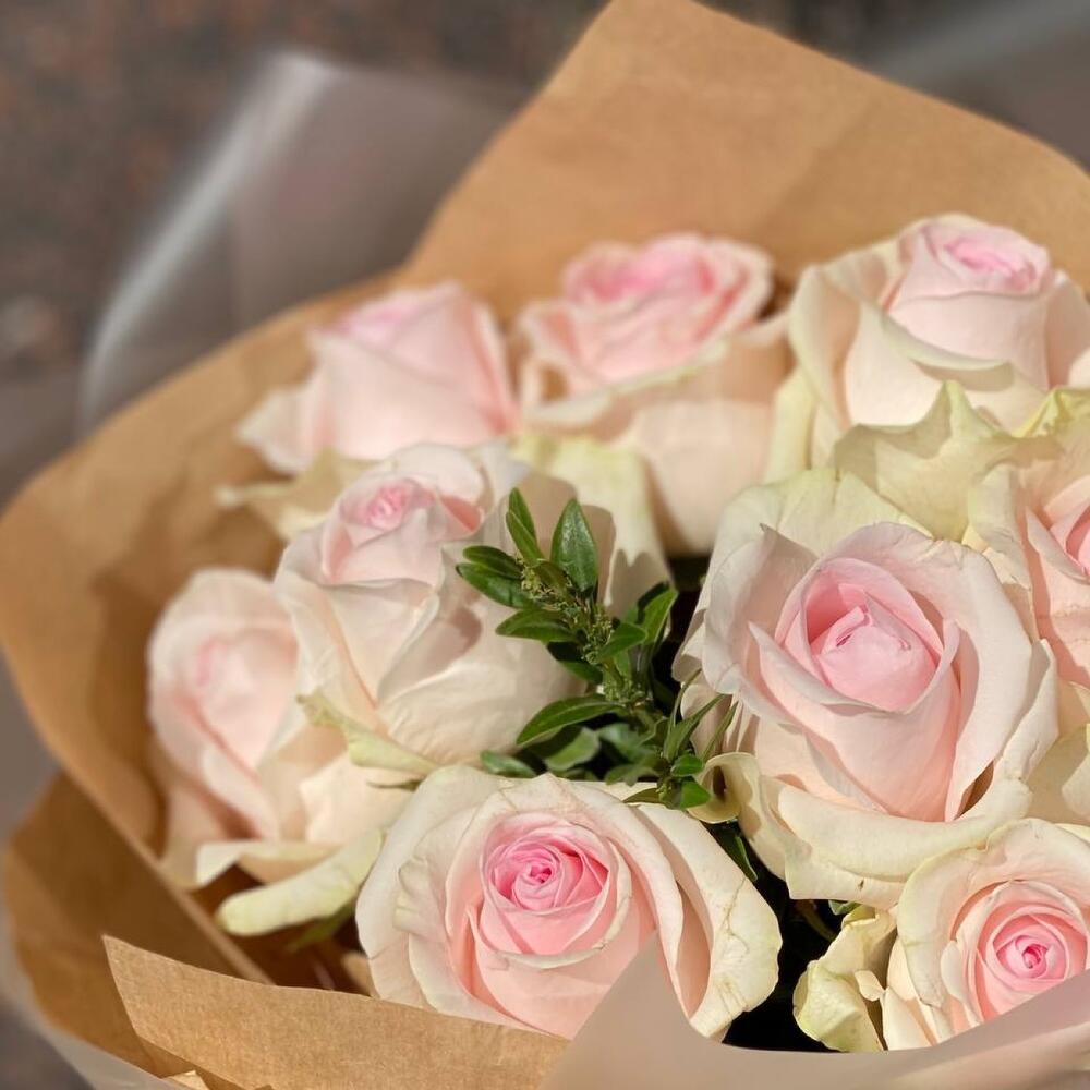 Нежный букет из роз и декоративной зелени